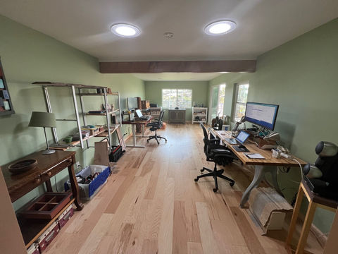 This project involved creating custom doors, and layout options for a home office for a homeowner. See the 3D SketchUp model versus completed space photos below.